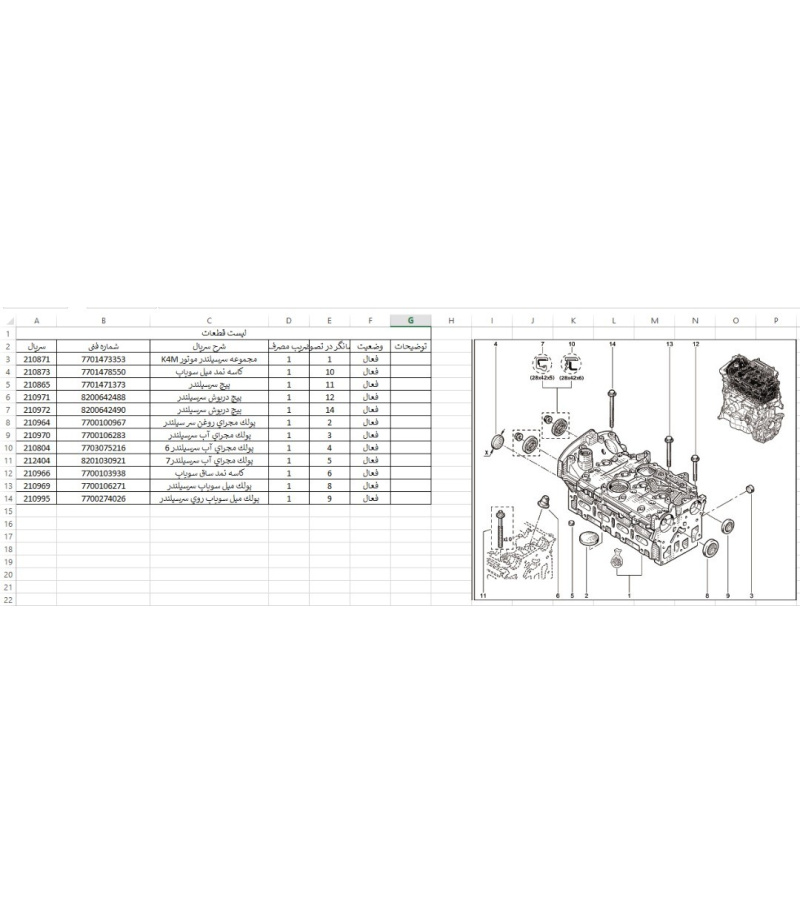 این فایل شامل لیست شماره فنی تمامی قطعات خودروی رنو ساندرو شرکت سایپا میباشد