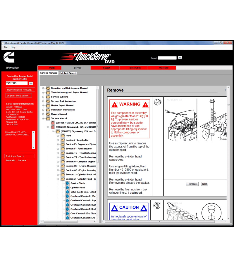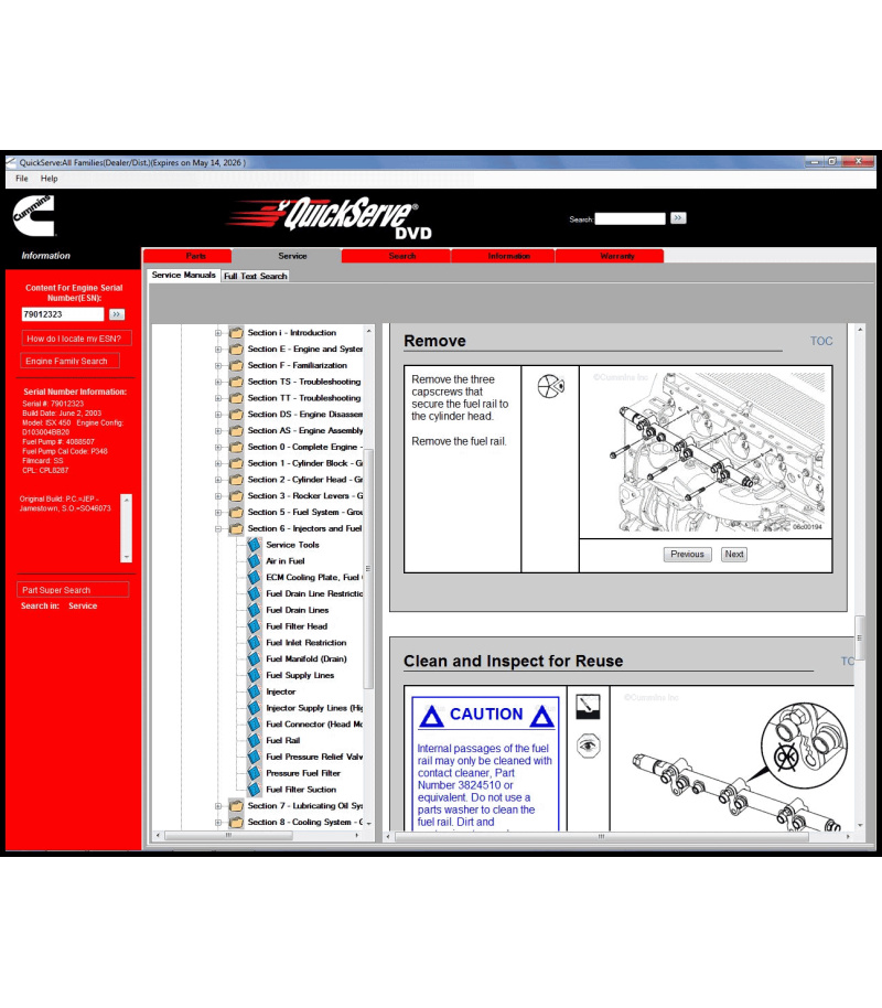 نرم افزار Cummins QuickServe یک نرم افزار بسیار جامع و کامل میباشد که شامل پارت نامبر ، ورک شاپ و ایراد یابی ها مربوط به تمامی موتور های خانواده کامینز میباشد که بصورت کاملا تست شده و آماده ارائه میباشد.