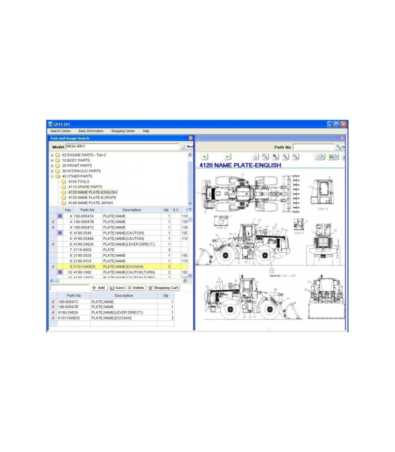 این نرم افزار لیست شماره فنی قطعات ماشین آلات دوو و دوسان را شامل میشود که شماره فنی قطعات و محل جاگیری قطعات تمامی مدل های دستگاه های سنگین دوو دوسان را دارا میباشد.