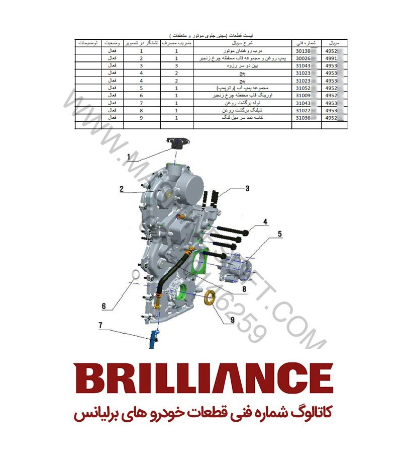 فایلهای لیست شماره فنی قطعات برلیانس شامل :