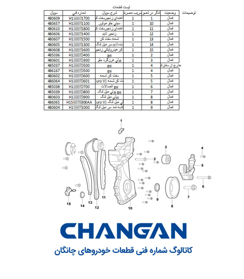 فایلهای لیست شماره فنی قطعات چانگان شامل :