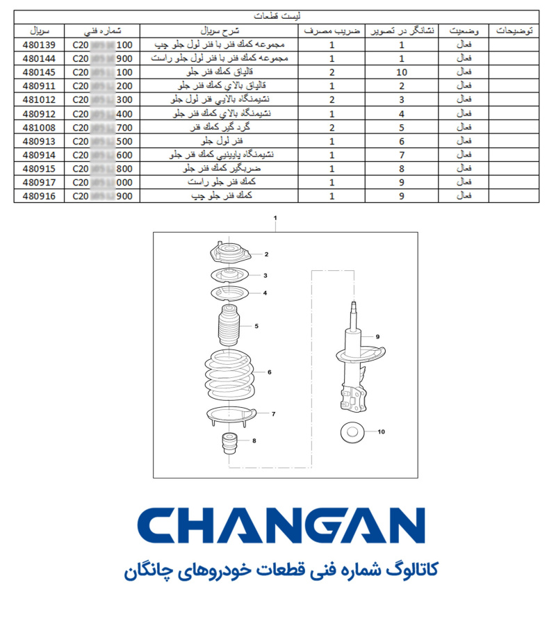 1-لیست کلیه قطعات خودروهای چانگان مونتاژ سایپا و وارداتی