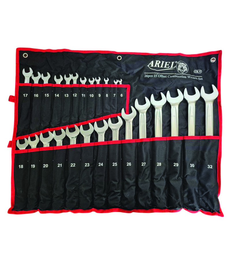 ست 26 عددی آچار یکسر تخت و رینگی فوق حرفه ای سایز6تا32 آریل ARIEL مدل ARAY2601 ضمانت تعویض و استاندارد آلمان