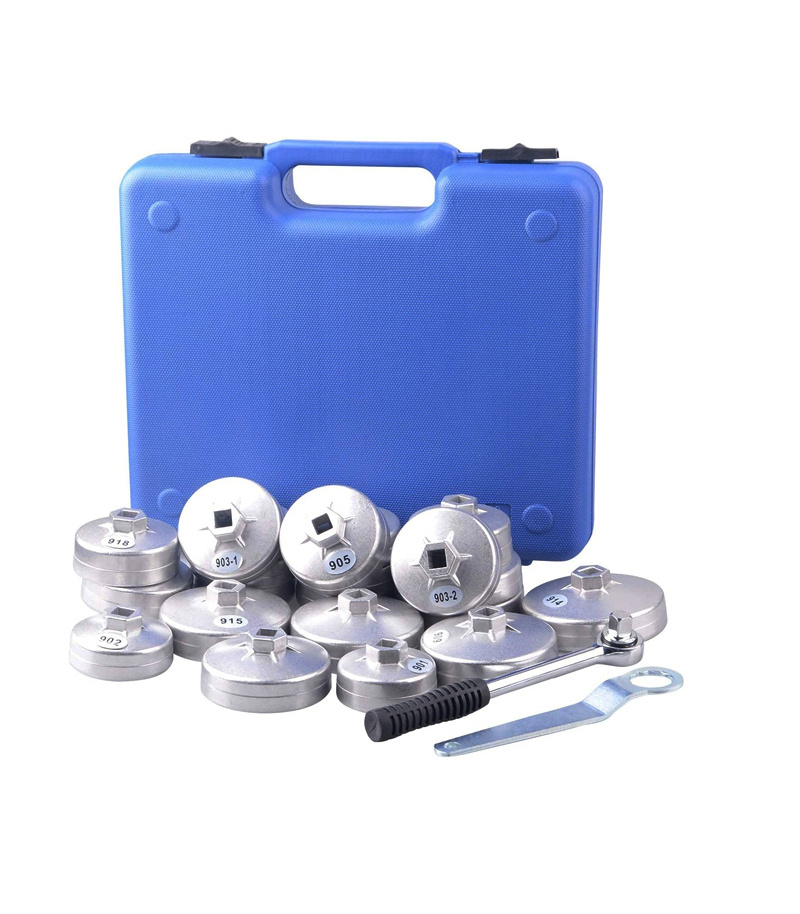 ست فیلتر باز کن کاسه ای 23 پارچه در صنایع مکانیکی کاربرد دارد و برای باز کردن انواع فیلتر روغن استفاده میشود.