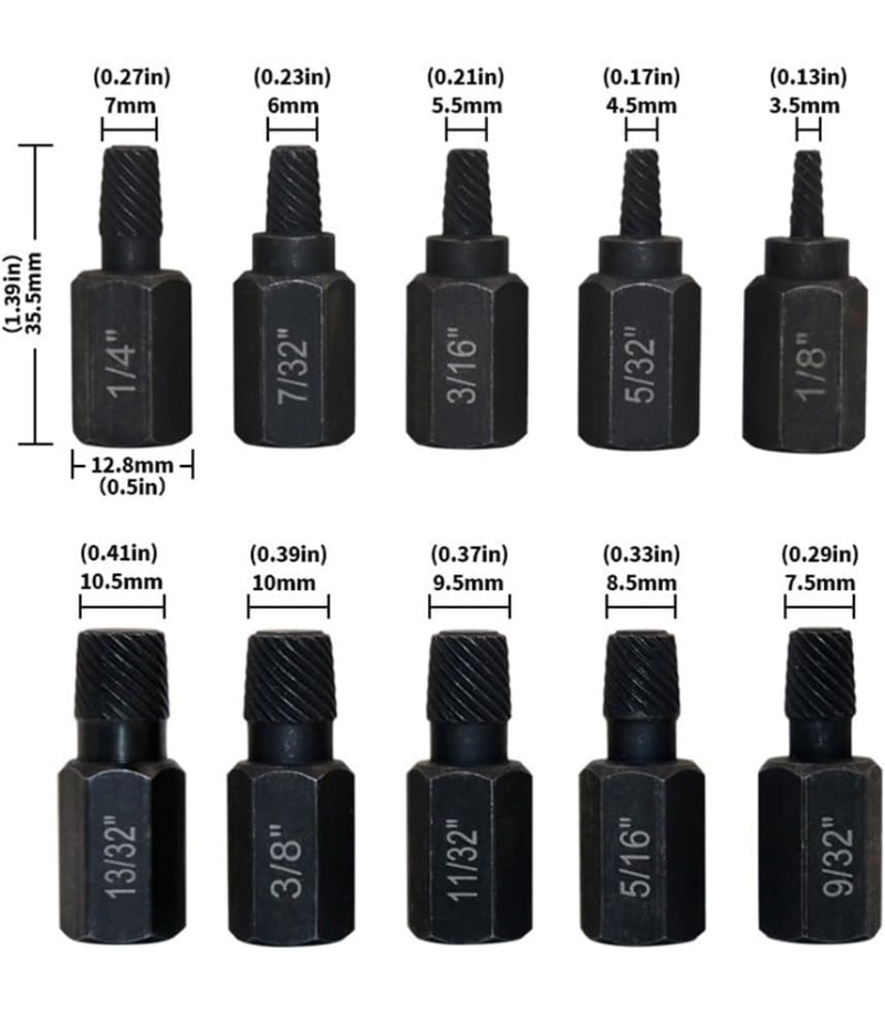 سایزبندی بکس ها به اینچ : "13/32 - "3/8 - "11/32 - "5/16 - "9/32 - "1/4 - "7/32 - "3/16 - "5/32 - "1/8 اینچ