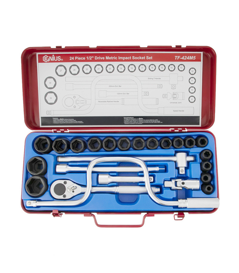 جعبه بکس 24 پارچه فشار قوی مشکی درایو 1/2 جنیوس GENIUS مدل TF-424M